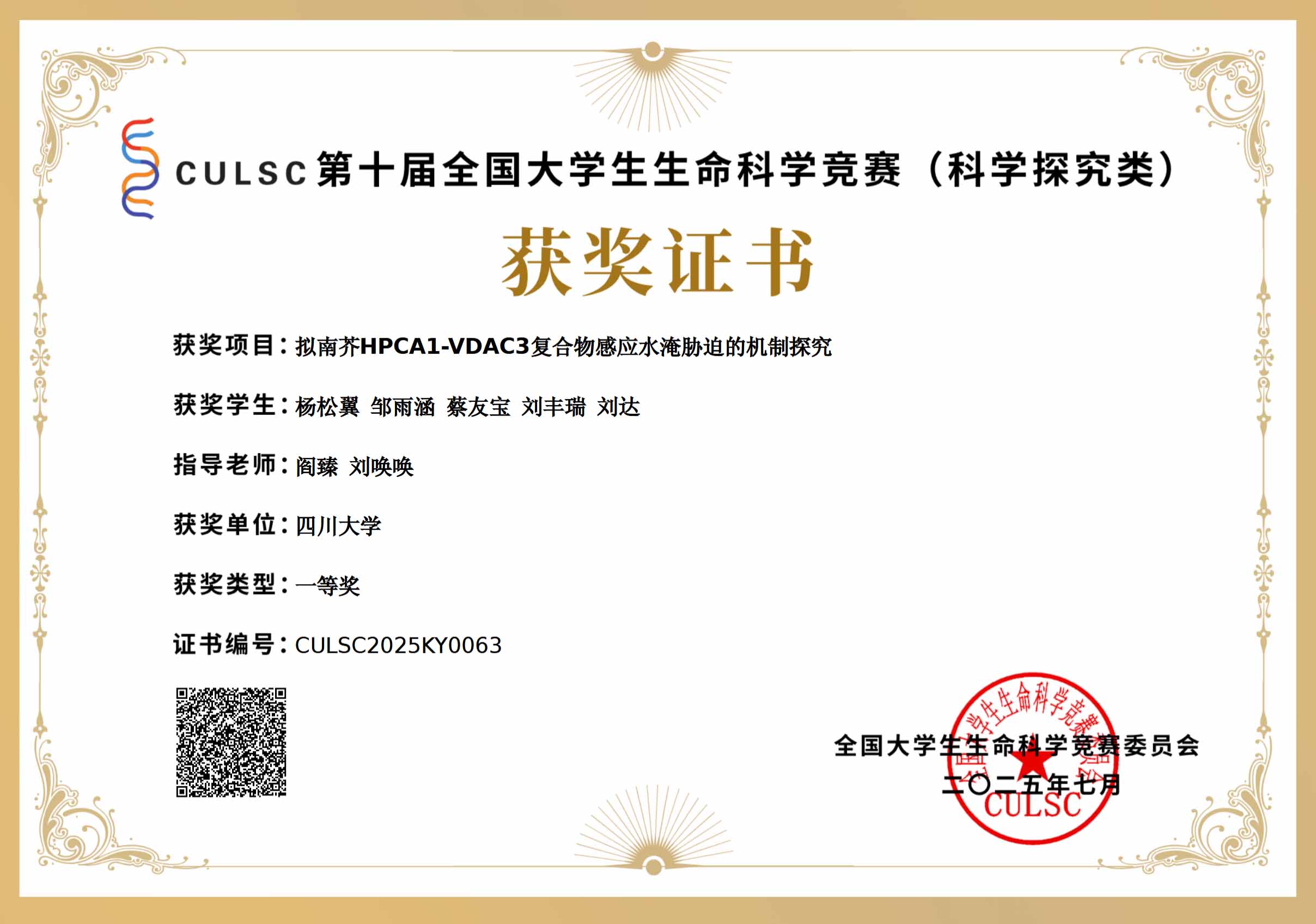 杨松翼等人获全国大学生生命科学竞赛一等奖